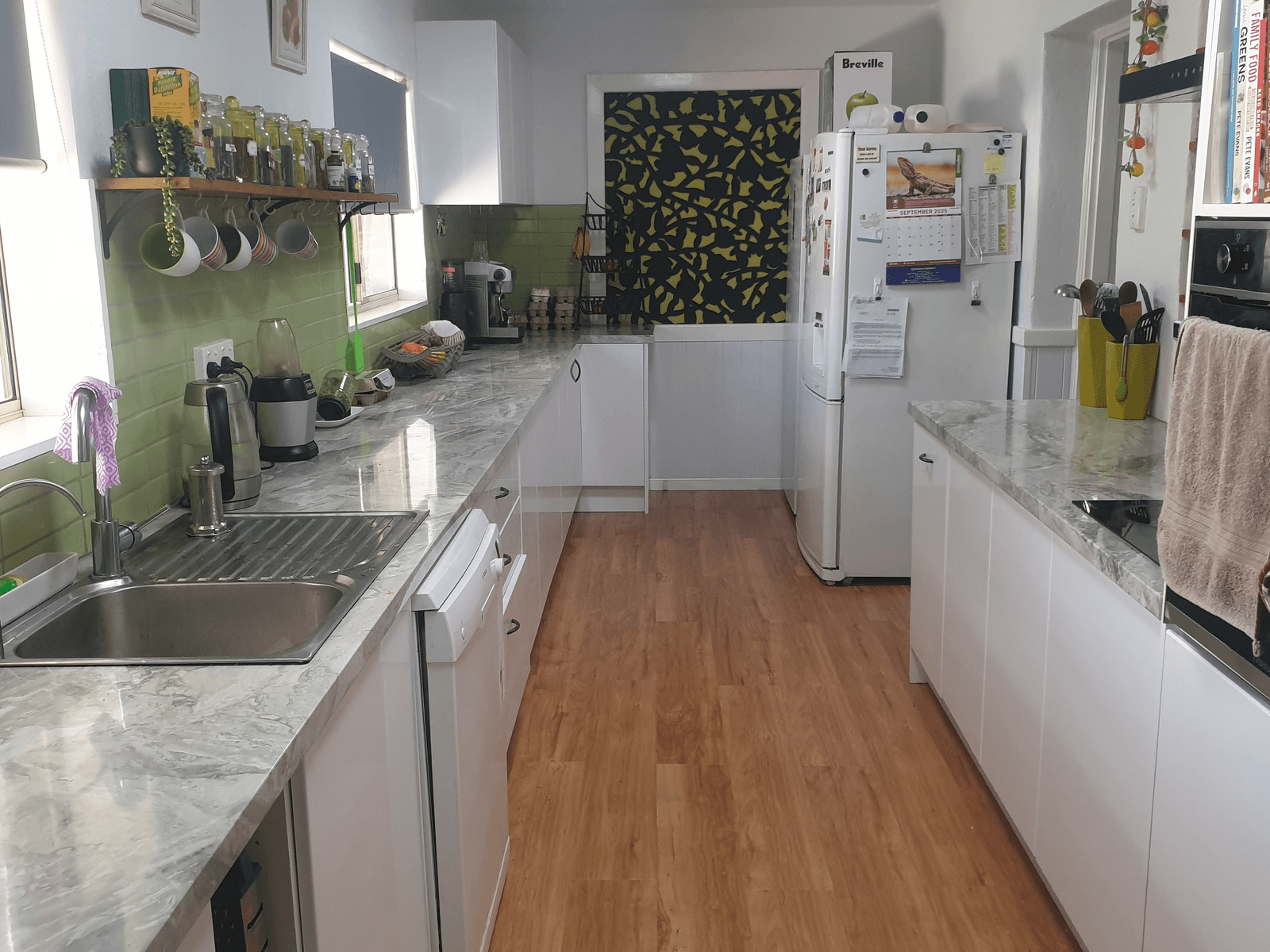 There are 3 or 4 bedrooms, depending on your needs, plus an office, kitchen, lounge/dining, bathroom with bath and shower, laundry with a second shower, plus an outdoor toilet. The semi enclosed patio means that you can get from the carport to the house under cover. It also houses the fold down clothesline.