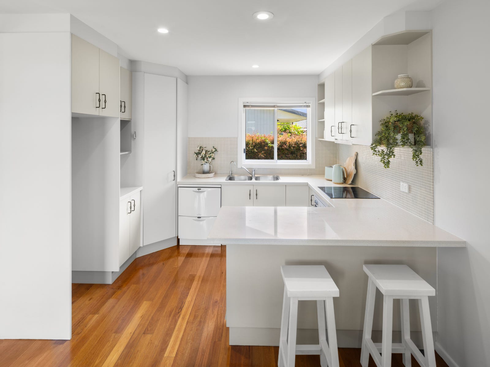 Step through the foyer and onto gleaming Australian hardwood timber floors, where you'll find a spacious open-plan living and dining area, complete with split system air conditioning for year-round comfort. The modern kitchen is well-appointed and ideal for home cooks or entertainers, seamlessly overlooking the central living space.