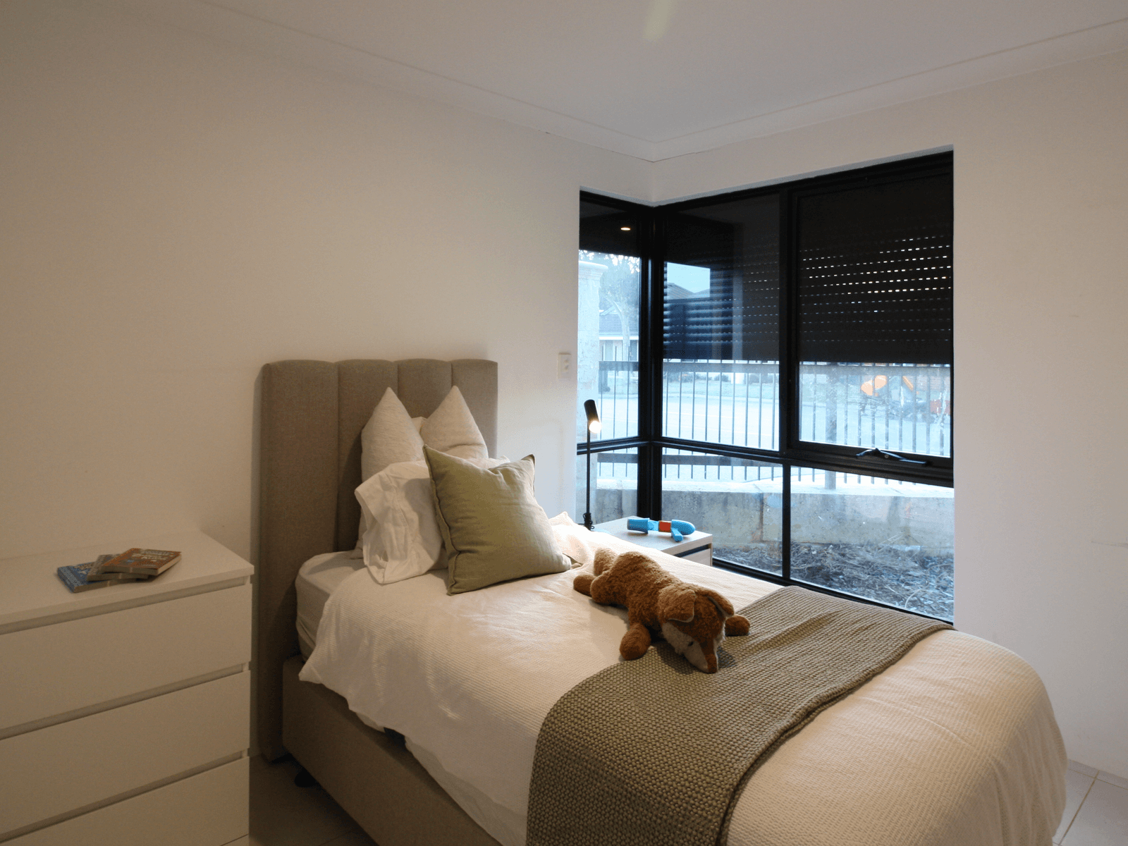 The master bedroom is larger than expected, with enough room for a private coffee lounge or reading nook to escape when you need some space for yourself; and the walk-in-robe is a welcome addition for when you are getting ready for a night out.