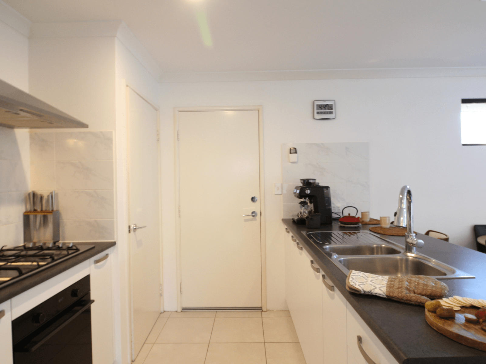 The kitchen has a large fridge area, quality stove and rangehood, and a brand new oven that includes an air fryer and pizza mode for entertaining and snacks. With the dual sink for cleaning up after a cooking spree and bench space to make it all possible, the kitchen is sure to impress.