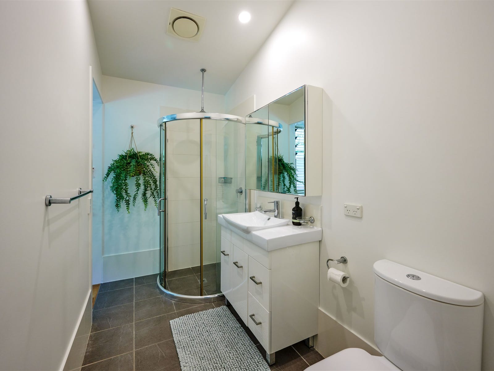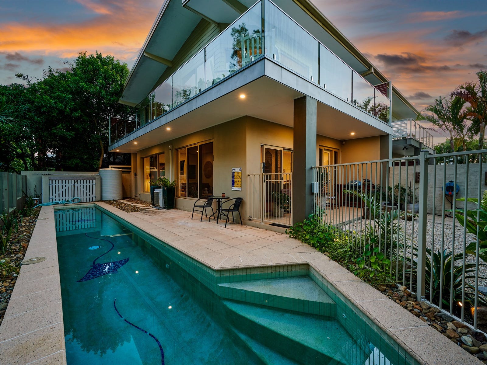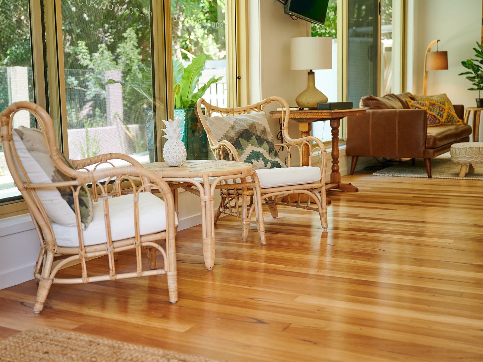 Upstairs are three beautifully appointed bedrooms all with deck access and amazing outlooks over the forest, pool and community park. It has two bathrooms including a large bath in one, and a separate laundry with washing machine and dryer. There are two queen beds plus two king singles. One bedroom includes a well-appointed desk with a second monitor and strong wifi signal throughout the home, so you can stay comfortably connected to the office while living at the beach.