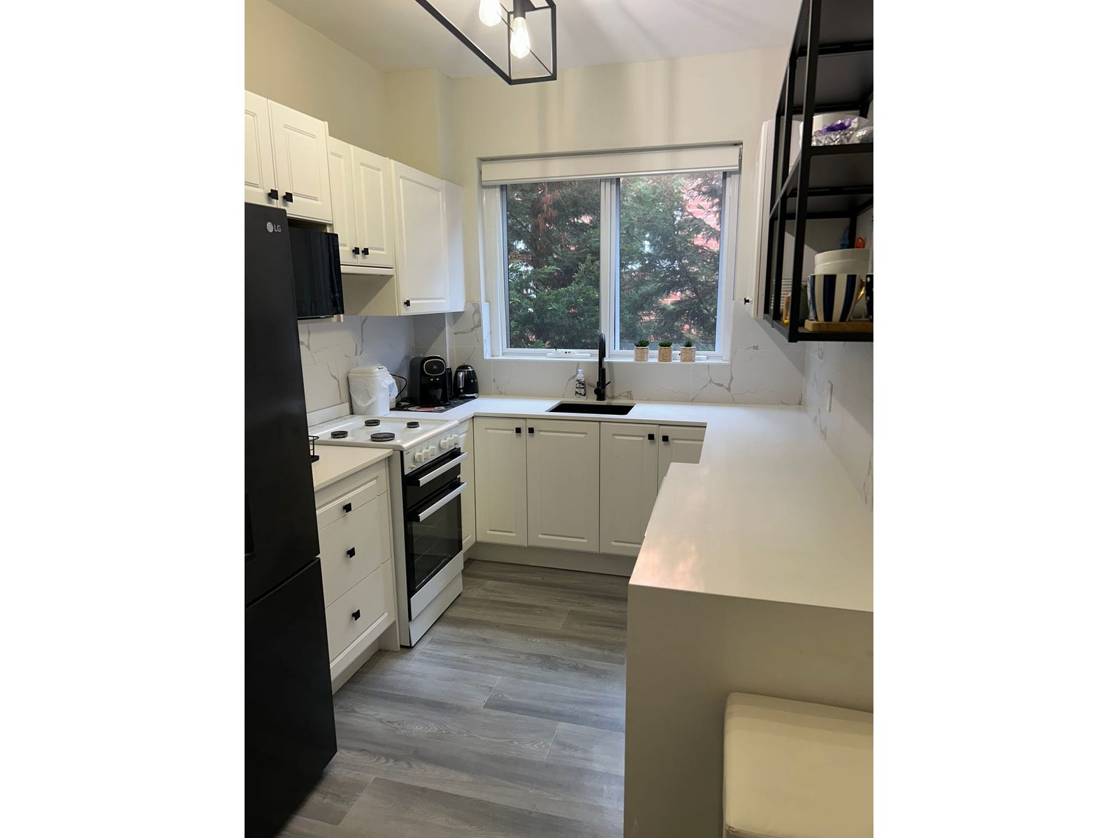 Updated kitchen with white stone benches and dishwasher, gas oven/stove. Separate shared laundry on each level.