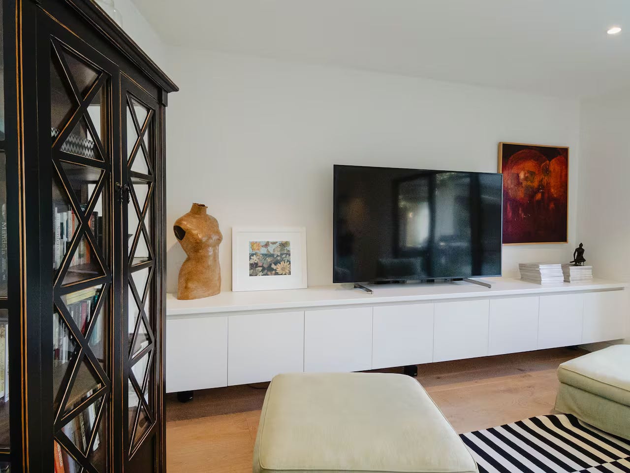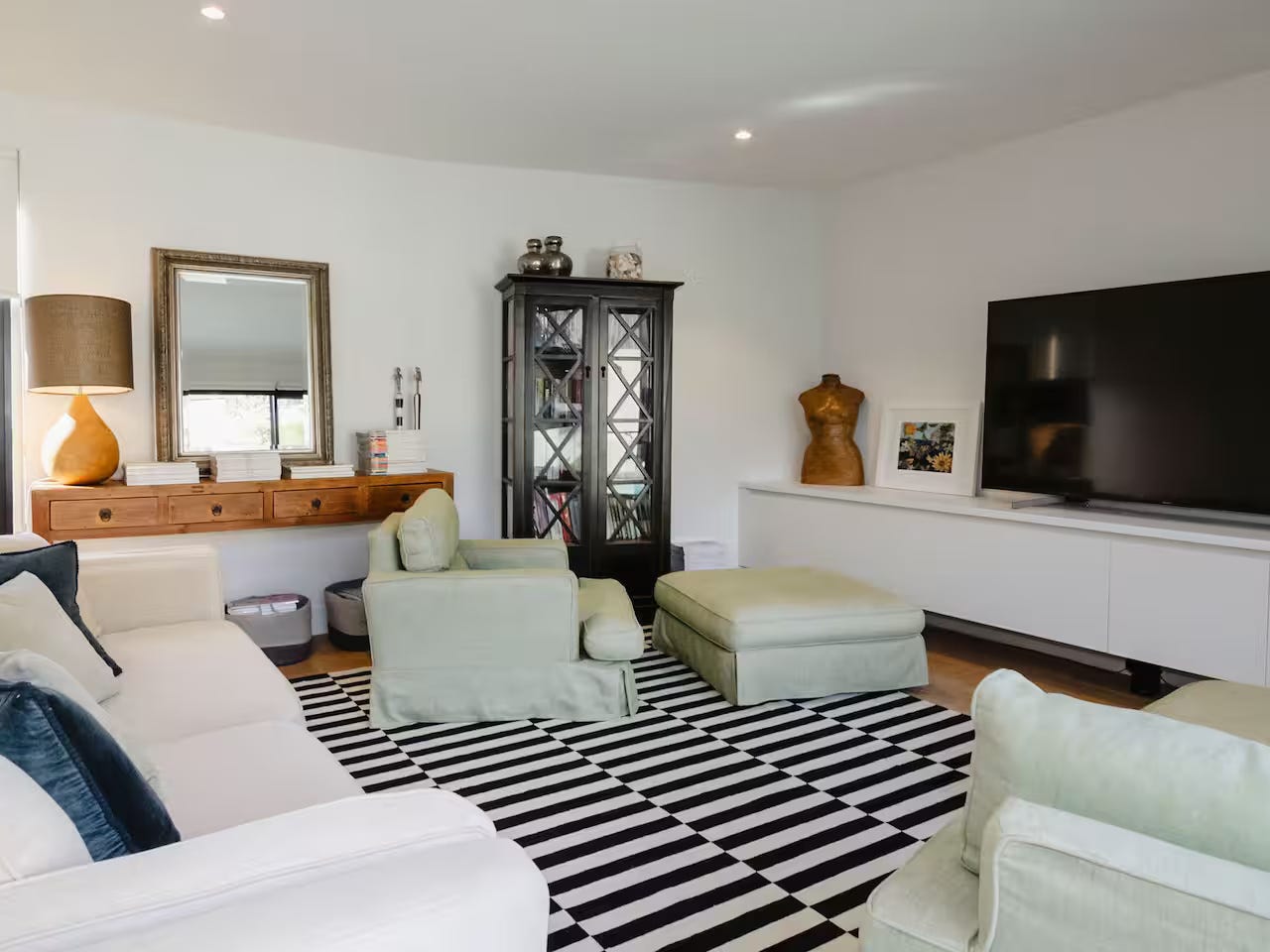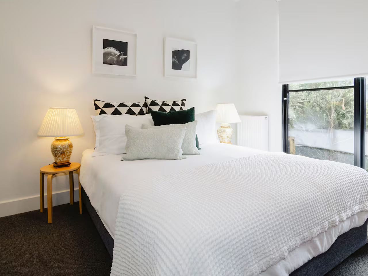 The master bedroom is a private sanctuary with peaceful views of the pool and garden, complete with a stylish ensuite bathroom and sliding glass doors that invite in the natural light. The remaining three bedrooms are generously sized and thoughtfully styled with comfortable bedding, soft linens, and ample storage, ensuring a restful stay for every guest.